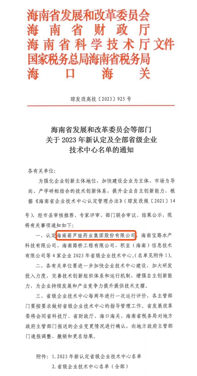 近日,海南省发改委等多部门联合公布了《关于2023年新认定及全部省级企业技术中心名单的通知》,其中,海南门徒娱乐药业集团股份有限公司成功通过评审,被认定为省级企业技术中心,是本次获批的4家企业之一。